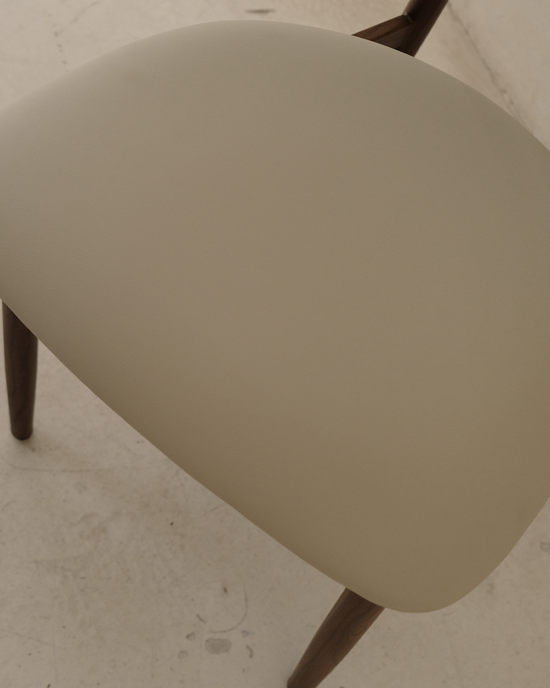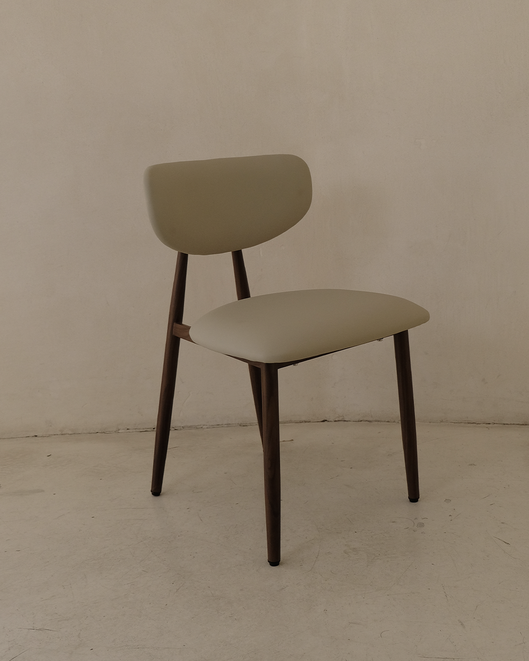 כיסא בעיצוב מודרני ונקי , עם ריפוד דמוי עור בגוון בהיר ונעים למראה ונוחות ישיבה גבוהה הודות למושב מרופד בצפיפות איכותית.