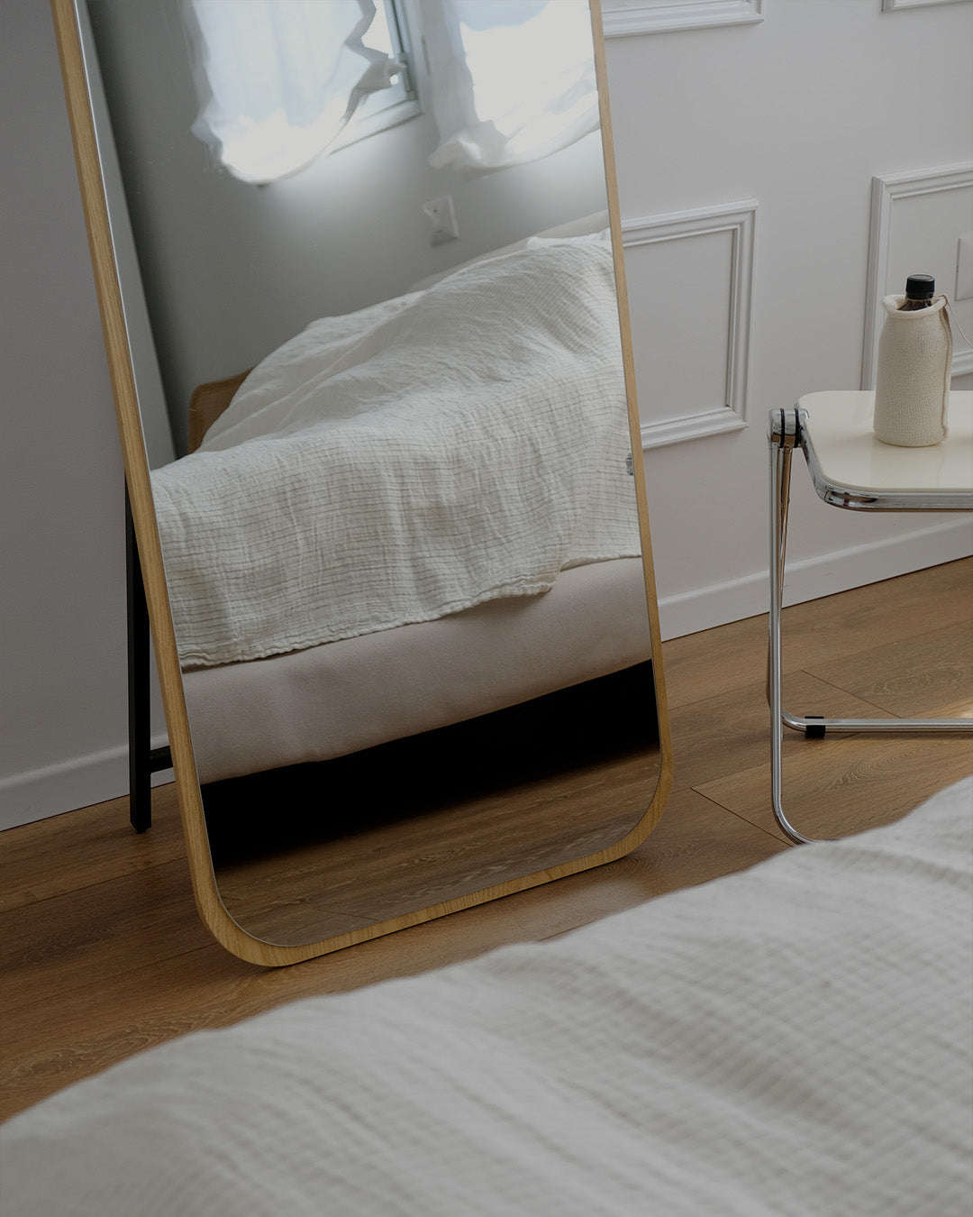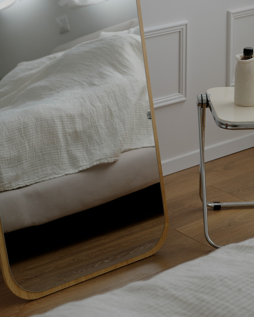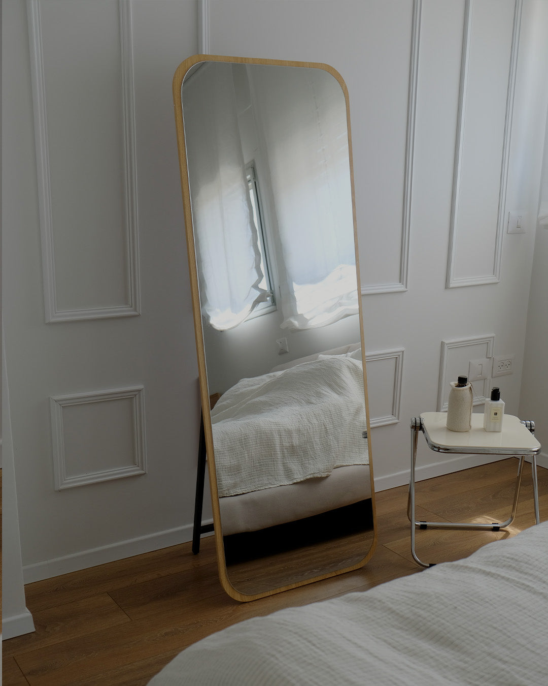 המראה ניתנת להנחה על הרצפה עם רגל אחורית יציבה, וגם לתלייה על הקיר בזכות הכנה אחורית מובנית – כך שתוכלו להתאים אותה בדיוק לצרכים שלכם.
