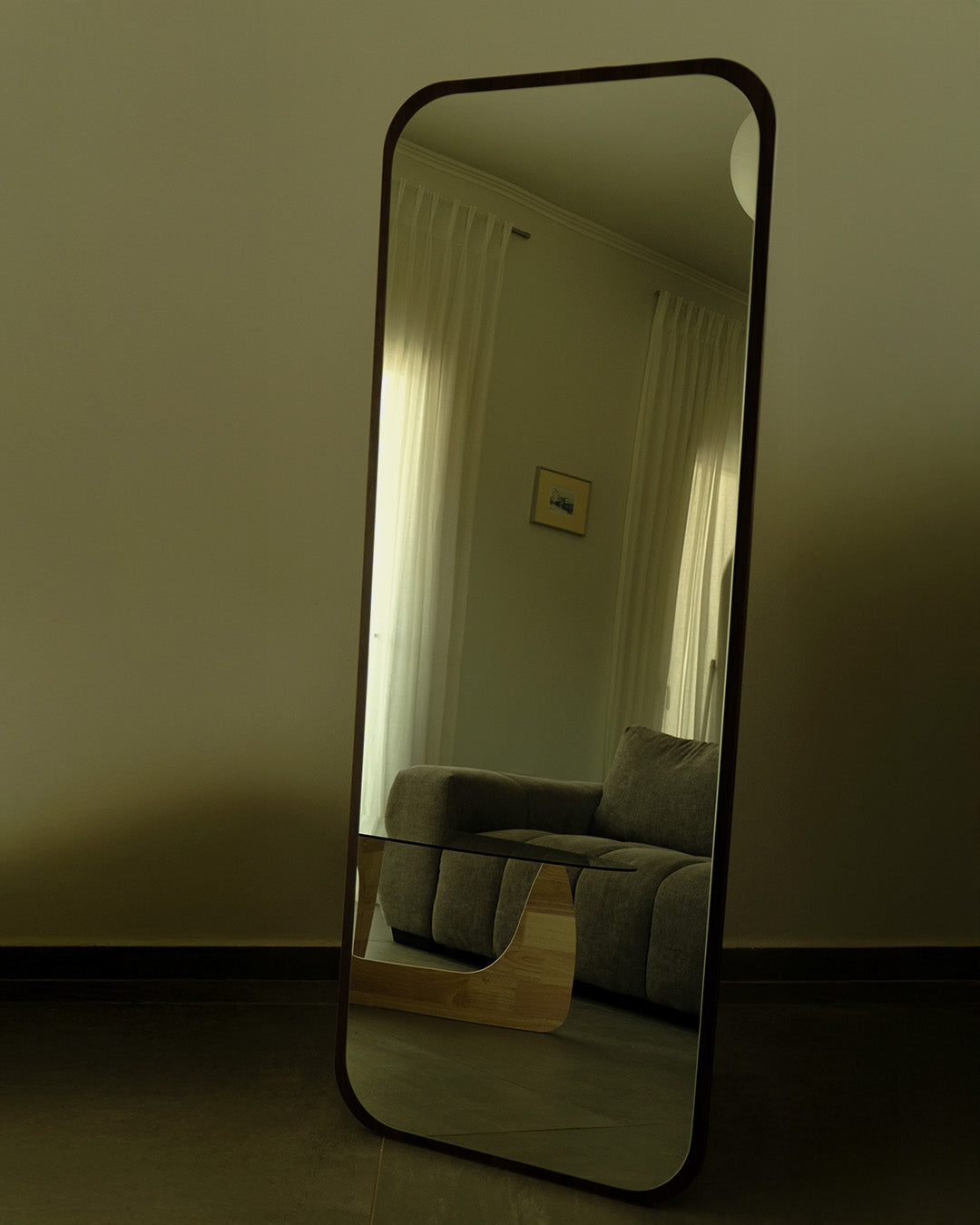 המראה ניתנת להנחה על הרצפה עם רגל אחורית מתקפלת, או לתלייה על הקיר באמצעות הכנה אחורית – בחירה ורסטילית שמתאימה לכל חדר.
