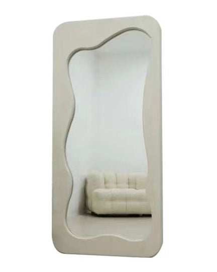 מראת קיר מלבנית עם חיתוך פנימי אורגני ורך. מוסיפה תנועה, עומק וסטייל מודרני לחלל