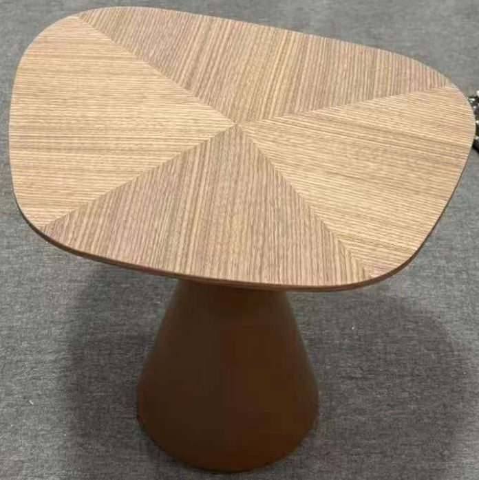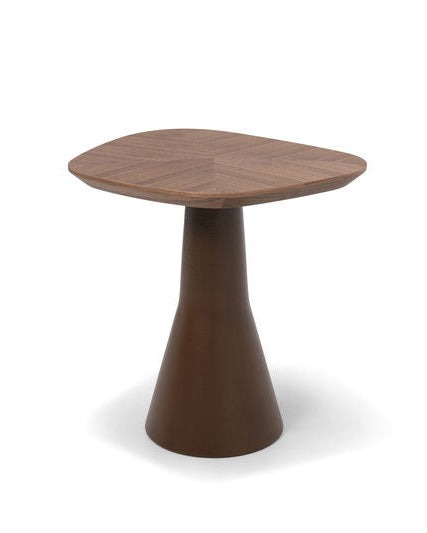 שולחן צד בעיצוב נקי עם פלטה מרובעת־מעוגלת עשויה פורניר אגוז בגימור טבעי. בסיס השולחן רחב ומתחדד כלפי מעלה, ויוצר מראה מאוזן ויציב.